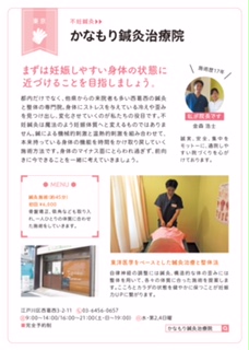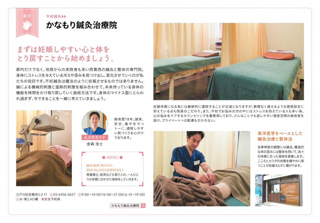 妊活専門誌「妊活サポートガイド オススメ治療院」コーナーに「かなもり鍼灸治療院」が紹介されました。
