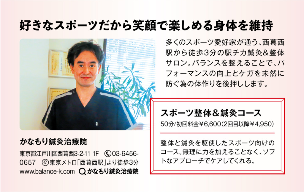 2022年8月3日発売のスポーツ雑誌「Number」にかなもり鍼灸治療院が紹介されました。