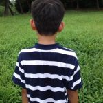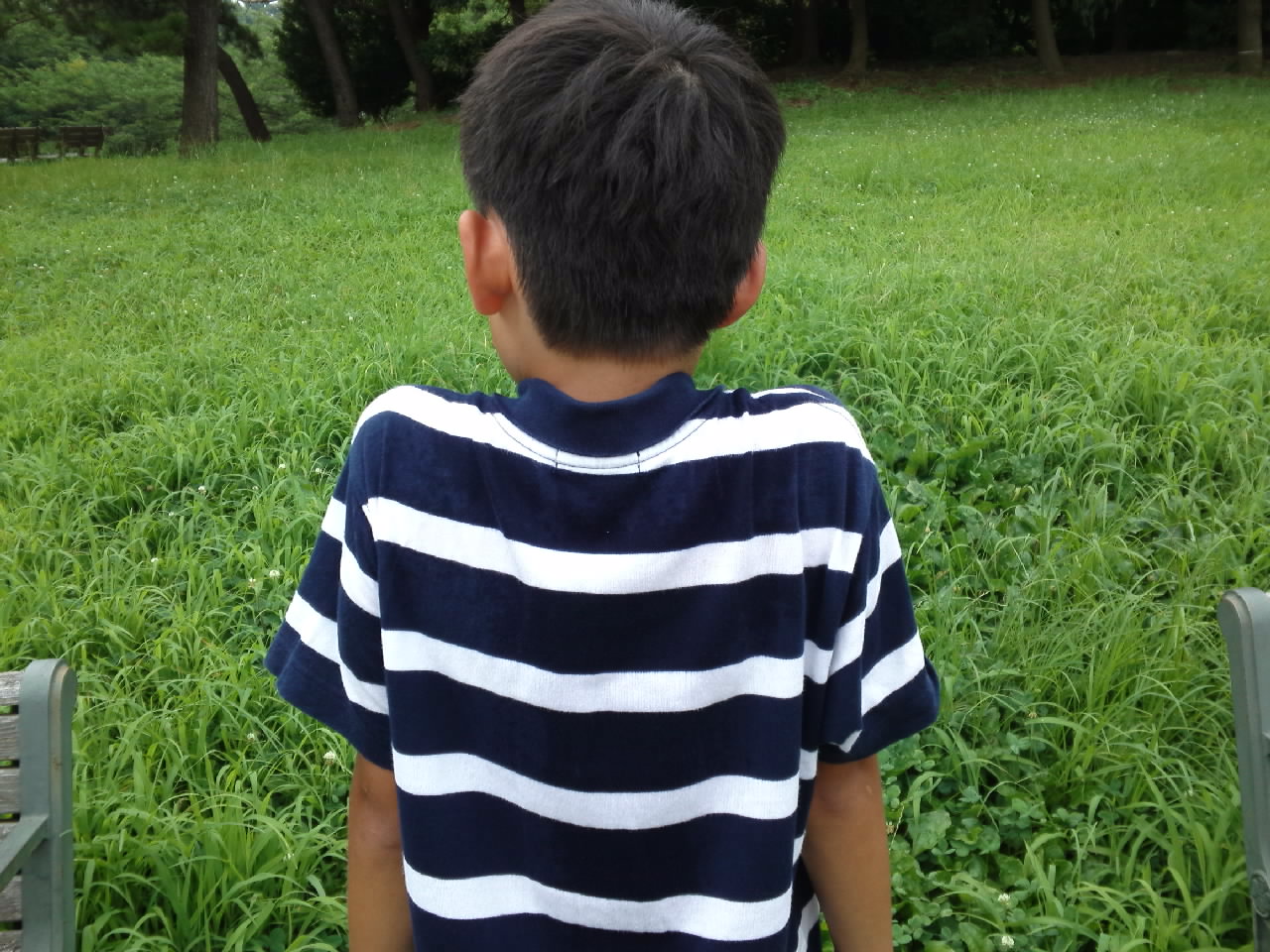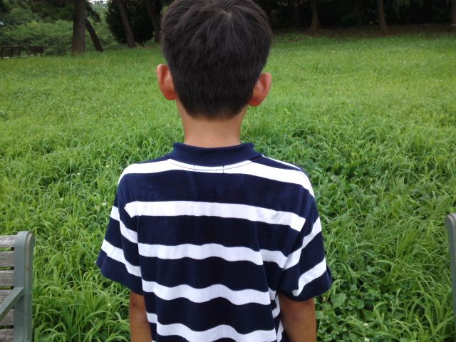 このとき肩と肩甲骨と胸全部を持ち上げるようなイメージで行います(写真の少年は少々固めで上がってませんが・・・)。