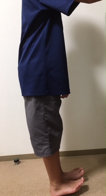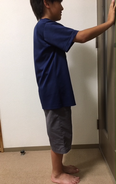 ②背伸びをします。この時に指の先までしっかり力を入れる