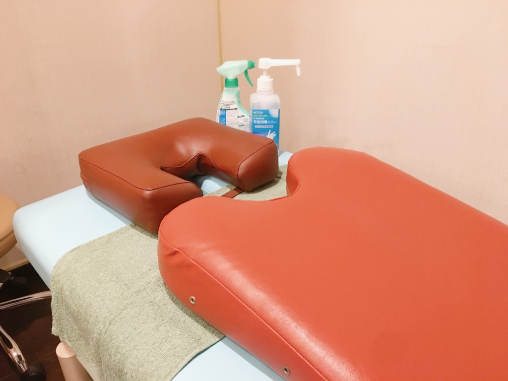施術後毎回の枕・マット・ベッド消毒の徹底
