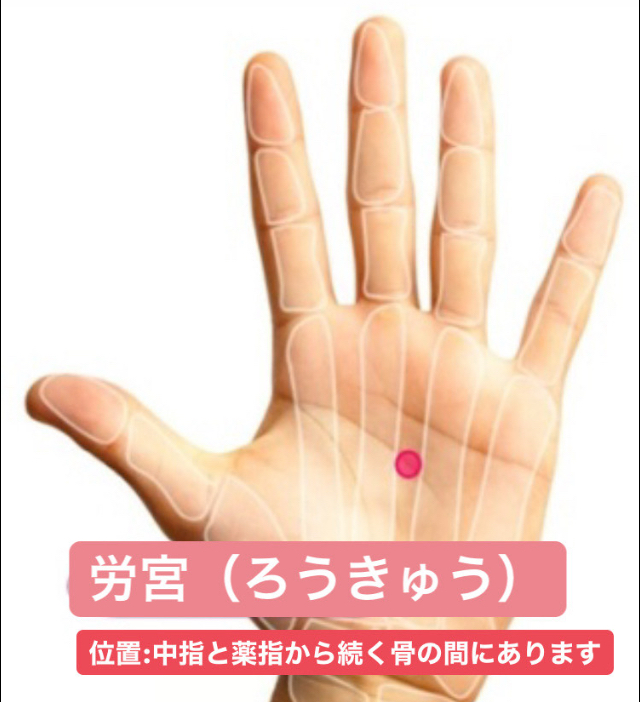 手のひらの中央にある「労宮(ろうきゅう)」。